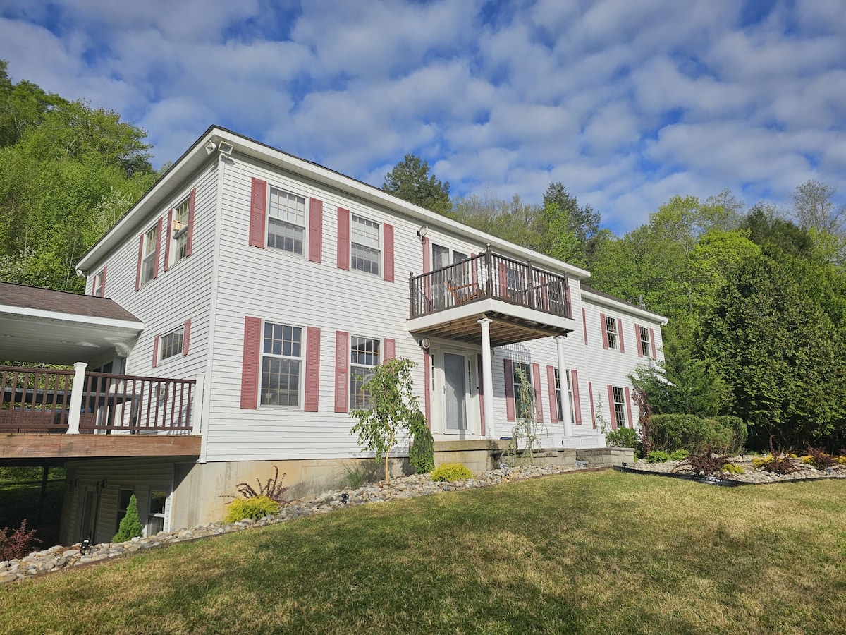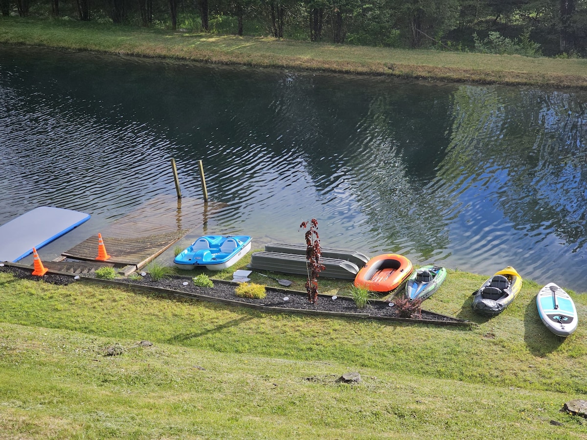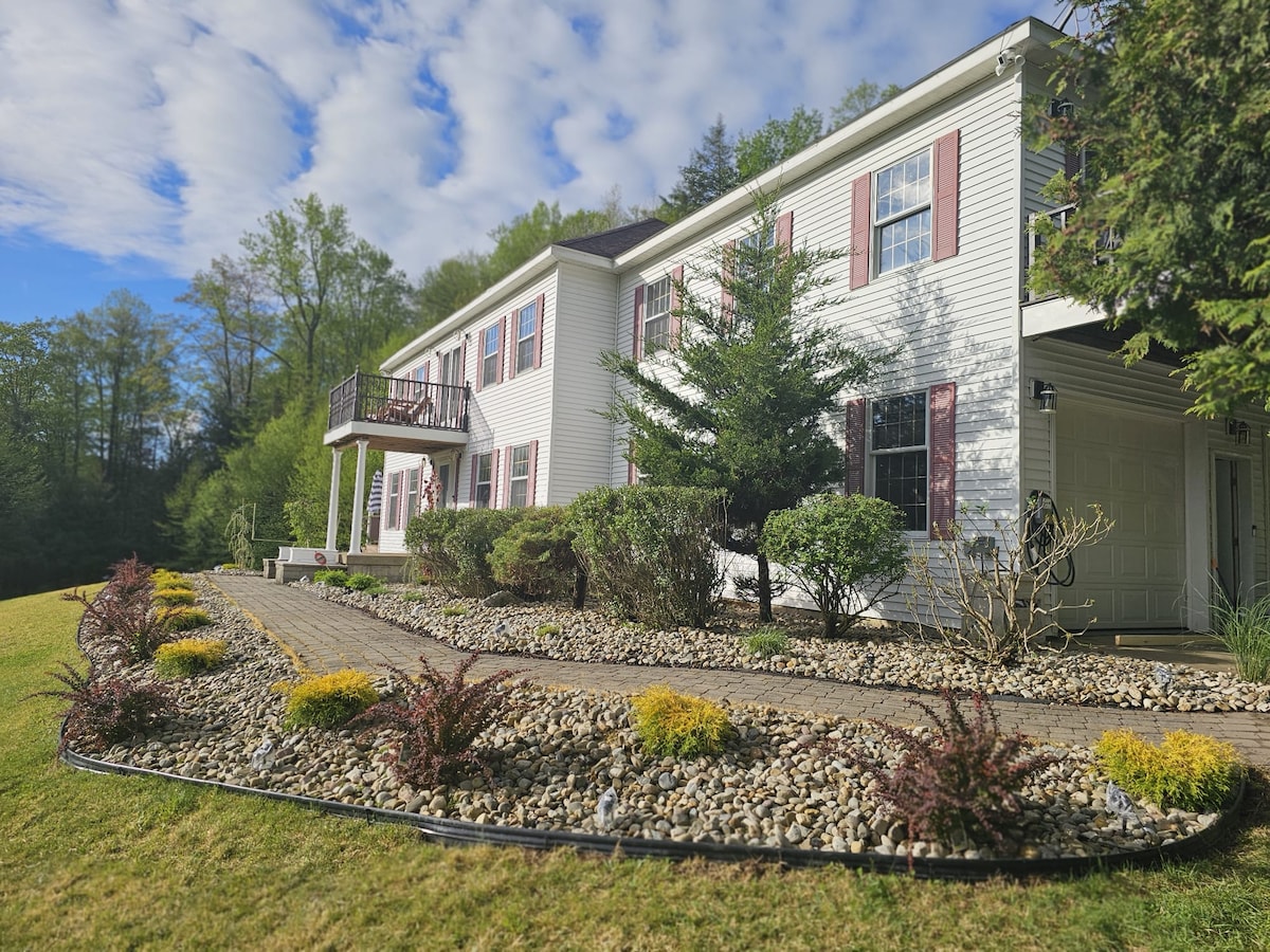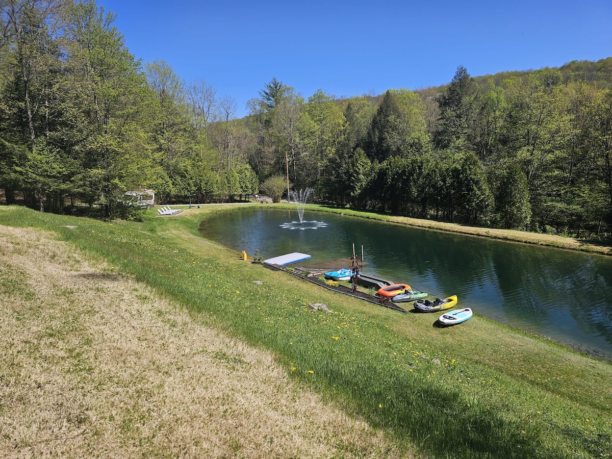 New MilfordMOUNTAIN SPRING MANOR Airbnb FEE INCLUDED! Nestled amidst the tranquil embrace of nature, this waterfront mountain home offers an idyllic retreat from the hustle and bustle of everyday life. Perched on the edge of a pristine pond with blue green waters, surrounded by towering peaks and lush forests, this private sanctuary promises a getaway like no other. Whether you're an avid angler or simply seeking a refreshing dip, the pond beckons with promises of fishing or swimming.