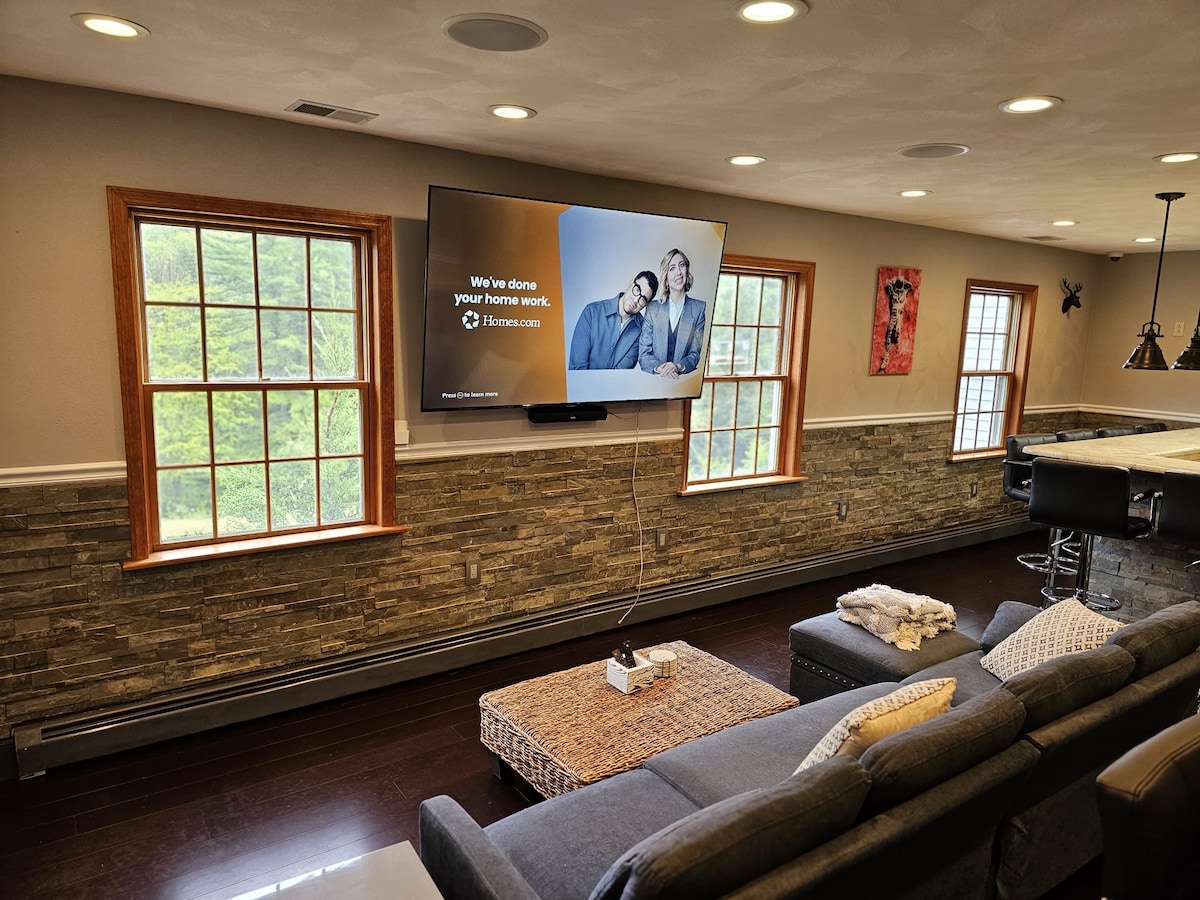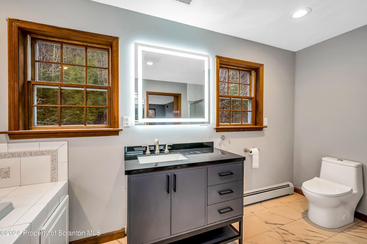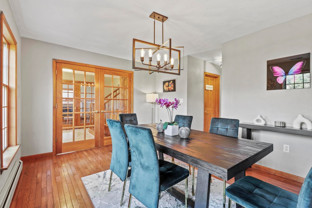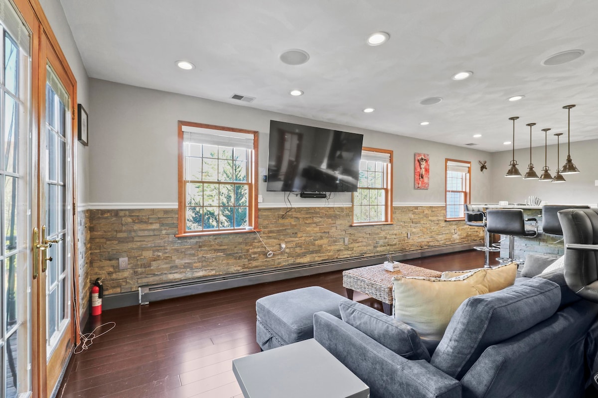 New MilfordMOUNTAIN SPRING MANOR Airbnb FEE INCLUDED! Nestled amidst the tranquil embrace of nature, this waterfront mountain home offers an idyllic retreat from the hustle and bustle of everyday life. Perched on the edge of a pristine pond with blue green waters, surrounded by towering peaks and lush forests, this private sanctuary promises a getaway like no other. Whether you're an avid angler or simply seeking a refreshing dip, the pond beckons with promises of fishing or swimming.