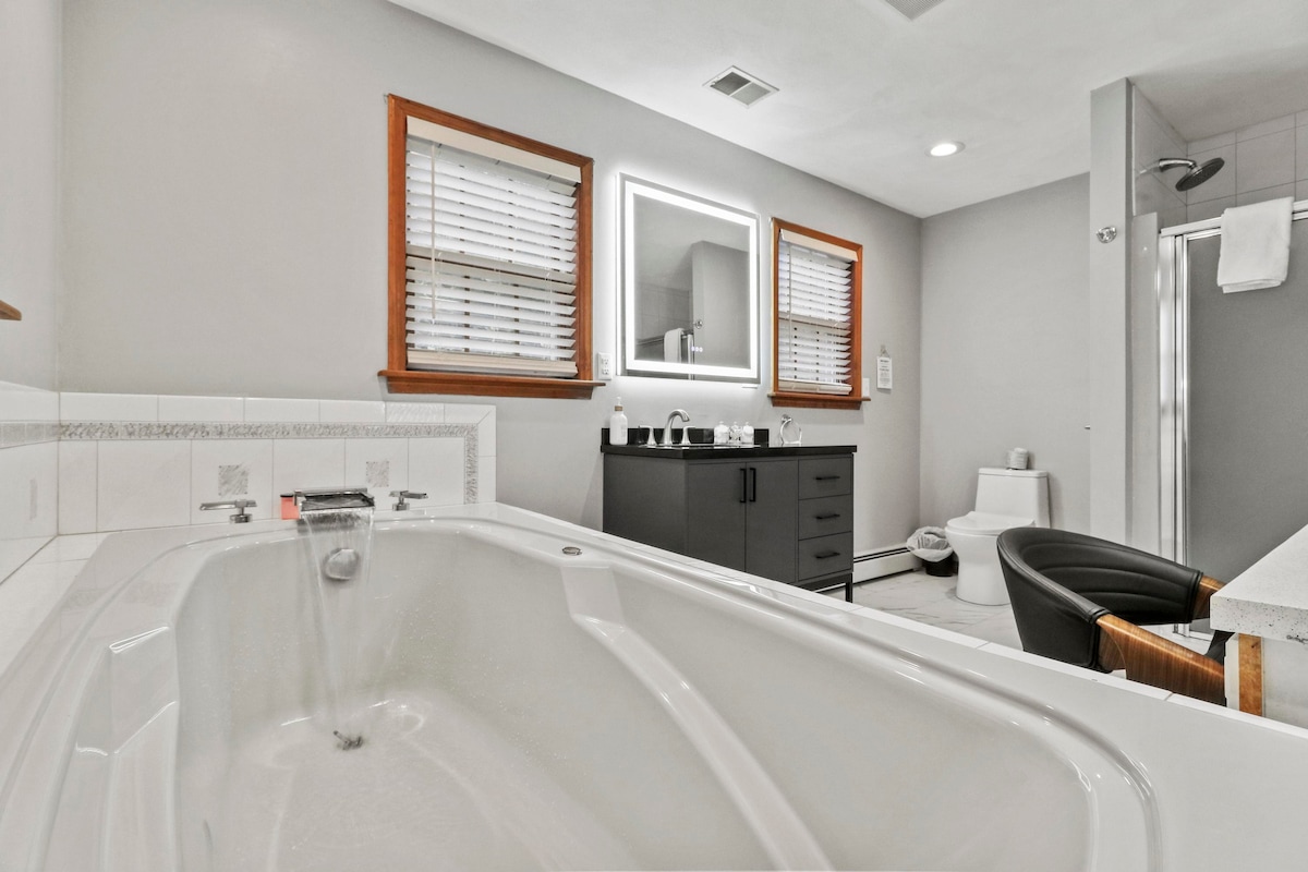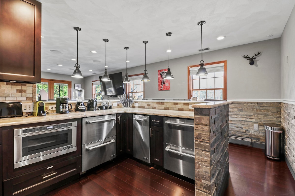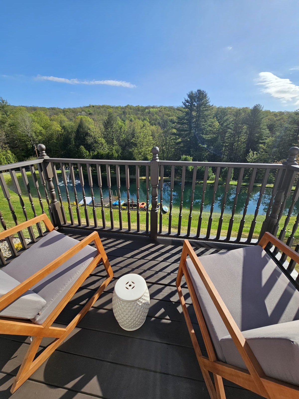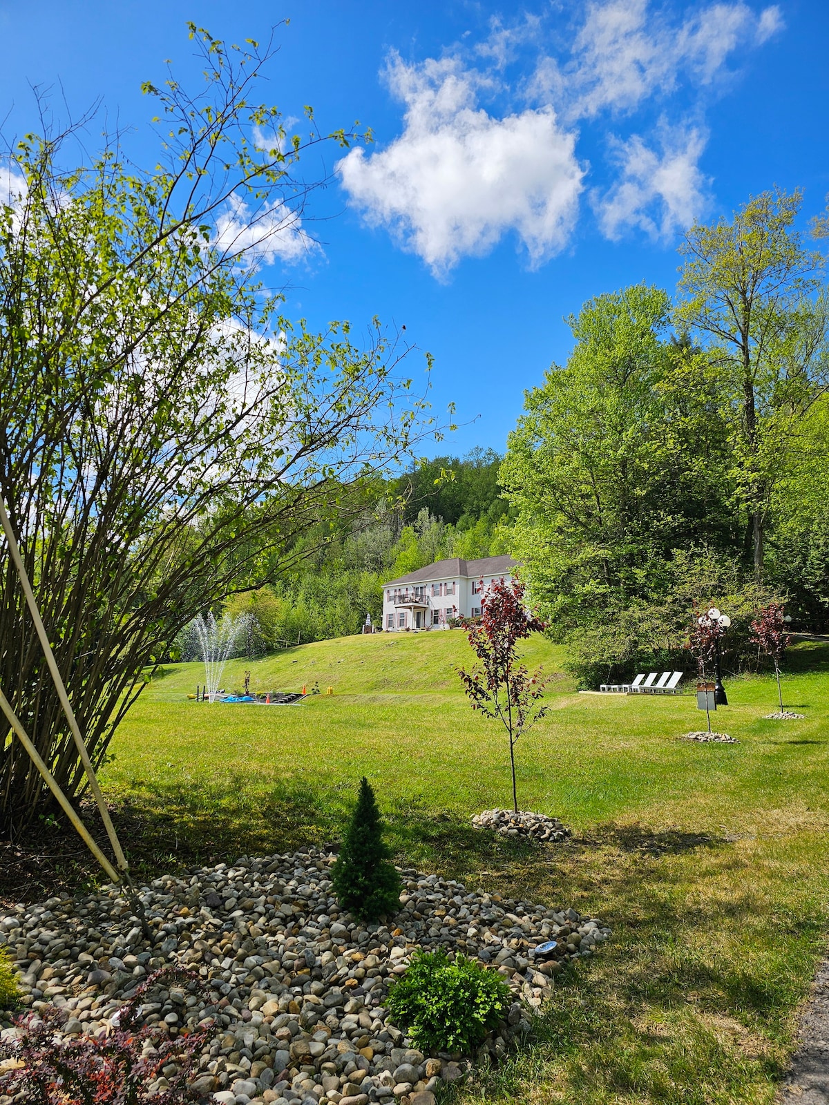 New MilfordMOUNTAIN SPRING MANOR Airbnb FEE INCLUDED! Nestled amidst the tranquil embrace of nature, this waterfront mountain home offers an idyllic retreat from the hustle and bustle of everyday life. Perched on the edge of a pristine pond with blue green waters, surrounded by towering peaks and lush forests, this private sanctuary promises a getaway like no other. Whether you're an avid angler or simply seeking a refreshing dip, the pond beckons with promises of fishing or swimming.