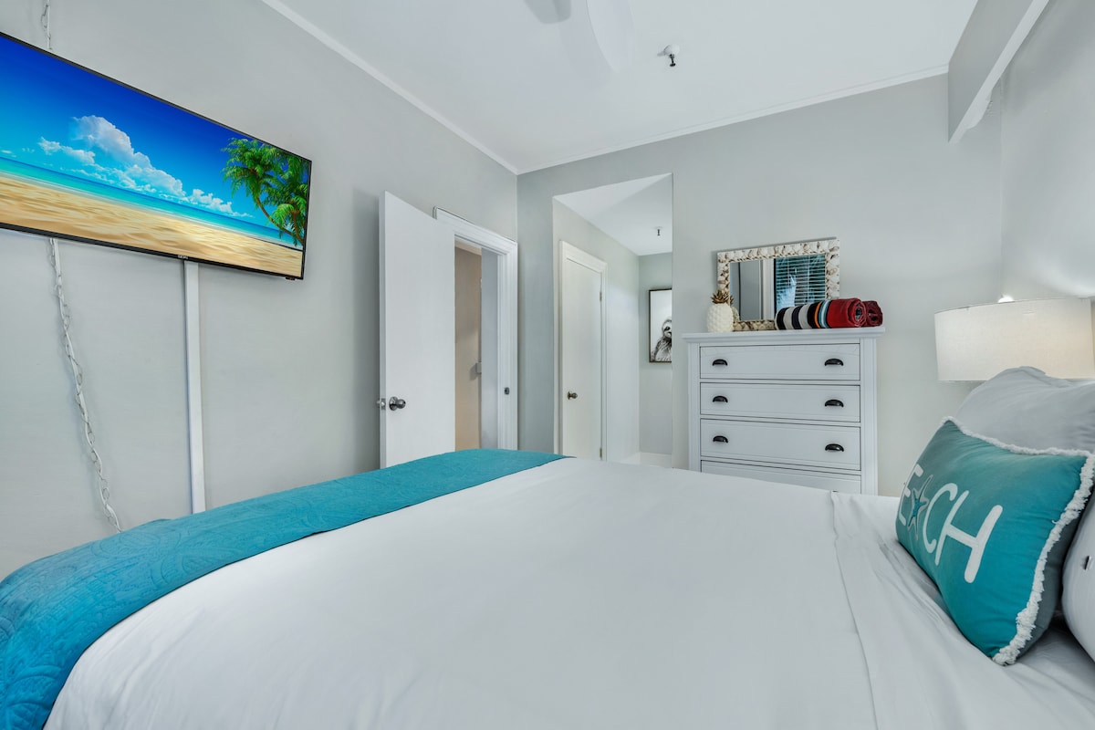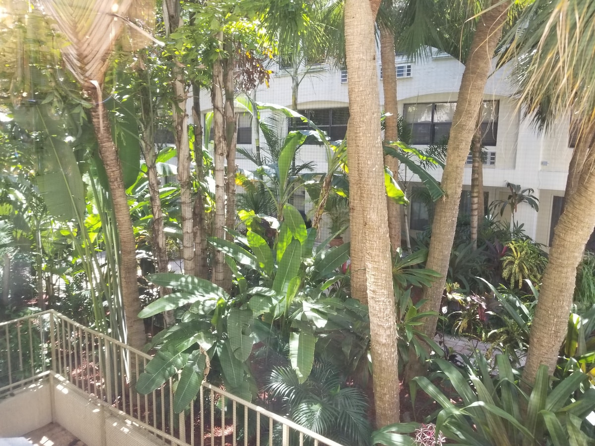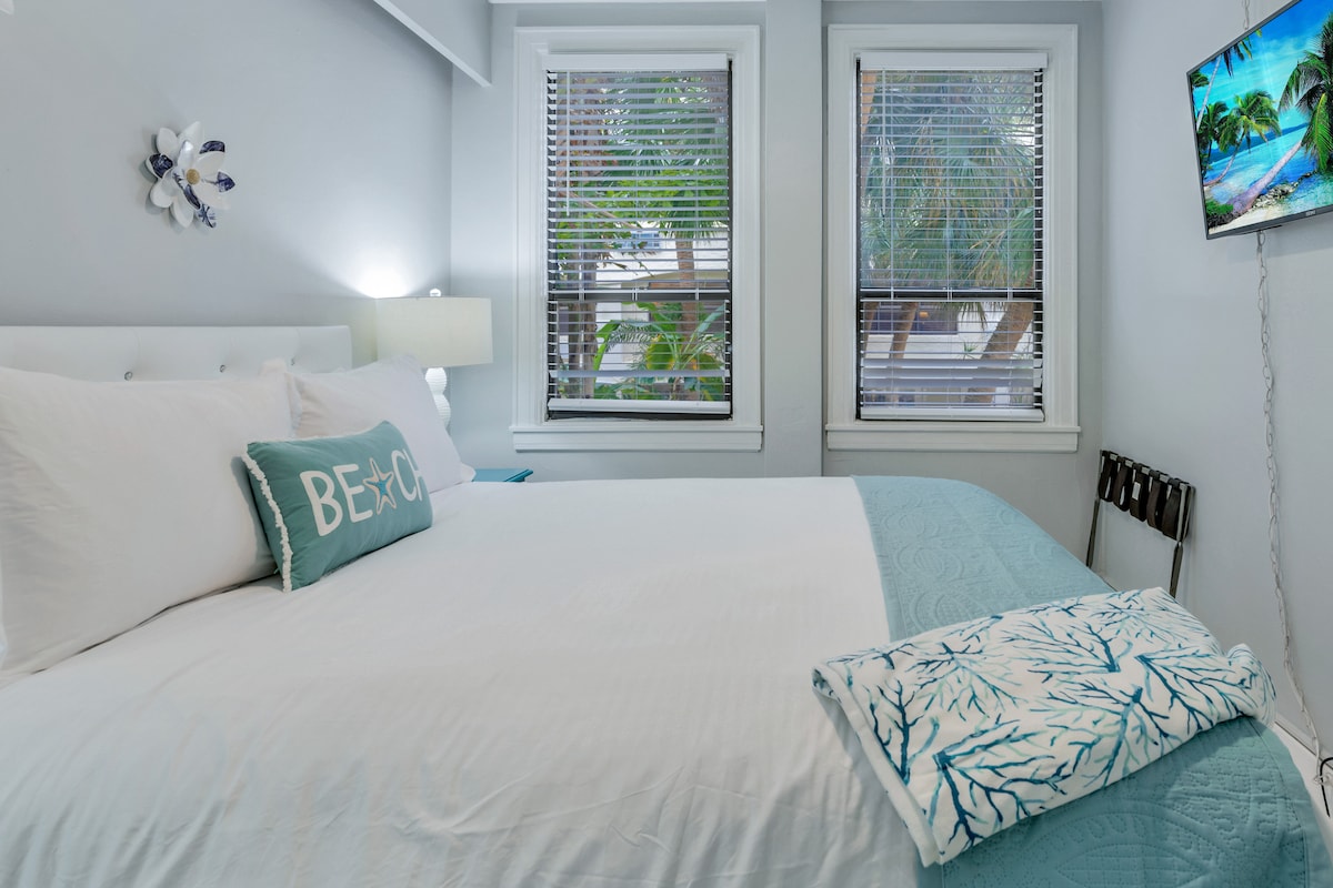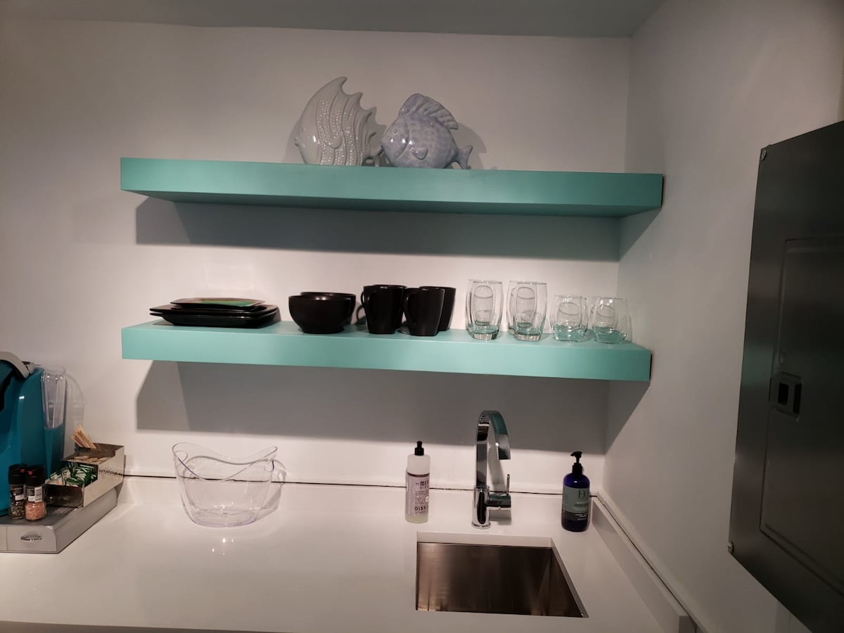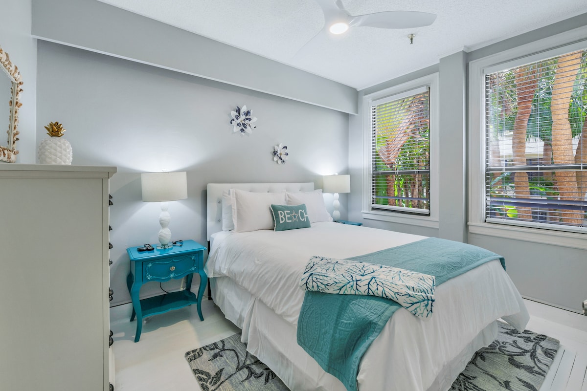 The spaceWalk to the beach from this newly updated 400SF one-bedroom condo with Queen Simmons Black Label beauty rest bed and deluxe pull out queen sofa bed in living room for two additional guests! The space is equipped with a kitchenette, living room, bedroom and bathroom. Coffee table is modular and converts to a dining room table. There's no need for a car. Gourmet restaurants, spas, shops & bike trails close. Located in the heart of the Town of Palm Beach 2.5 blocks from the beach access. The beach is a short walk away and there is a Publix grocery store across the street. Included is a room safe, beach towels, beach chairs, beach umbrella, umbrella, soap, shampoo, conditioner and Keurig coffee pods